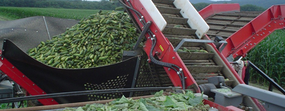 Комбайн прицепного типа служит для выполнения сплошной уборки огурцов. За счет продуманной конструкции данный процесс отличается высокой эффективностью и бережностью сбора урожая.
